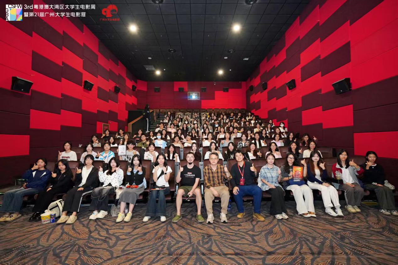 2025年11月7日18:00,第3届粤港澳大湾区大学生电影周暨第21届广州大学生电影展(以下简称“大影周”)广东技术师范大学专场在我校白云校区江高巨幕国际影城成功举办。此次展映优秀粤产动画电影《猪猪侠·一只老猪的逆袭》,李腾栋导演亲临现场,代表主创团队与广师大青年学子深度交流。