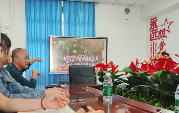 图 2 与贤江小学郑凯钟校长讨论师范生的培养