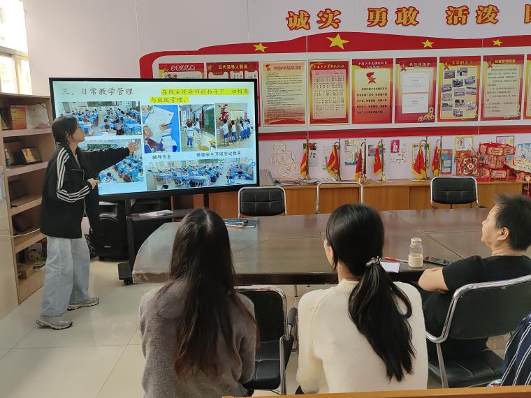 汇报课后,全体与会人员移步教学楼一楼少先队室,开展深度座谈交流会,全面复盘前期实习工作。首先,实习生成墁儿就实习生们的学科教学、班主任工作及见习总体情况进行了系统详实的汇报,展示了实习生们认真负责的态度和良好的工作能力。