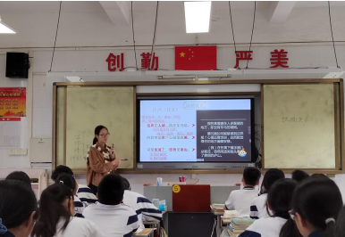 下午,蒋老师与双沙中学的梁主任、李主任、实习生指导老师周小丹等走进八年(2)班,旁听实习生代表钟瑜的汇报课《饮酒·其五》。整个课堂围绕陶渊明“悠然”“自由”之意展开,条理清晰,课堂氛围良好,师生互动和谐。