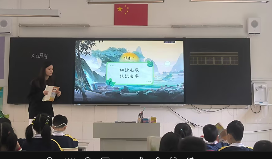 随后 ,校内外指导教师一同观摩实习生李丽如在一年级( 6 )班开展的汇报课《日月明》。她采用趣味小游戏、小组赛读等教学方式,顺利地完成教学任务;指导教师们从 时间掌握、内容衔接等方面提出了中肯而宝贵的意见。