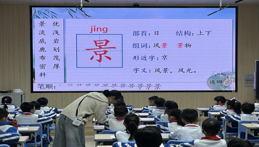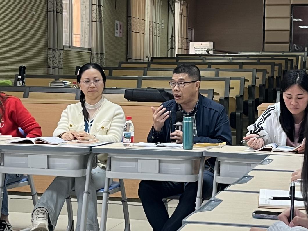 佘爱春院长对这节汇报课也进行了点评。他指出这节课抓住关键句进行教学,落实了单元语文要素,达到了教学目标和要求。特别提到“跟着课本去旅行”的情境创设是课堂的亮点,能够吸引学生注意力且贯穿课堂。同时,也指出课堂最后的生字指导环节可省略,将更多时间用于课堂小结。另外,佘院长还提到全体实习教师应该积极顺应时代变化,将AI元素融入语文教学,利用AI赋能教学工作。