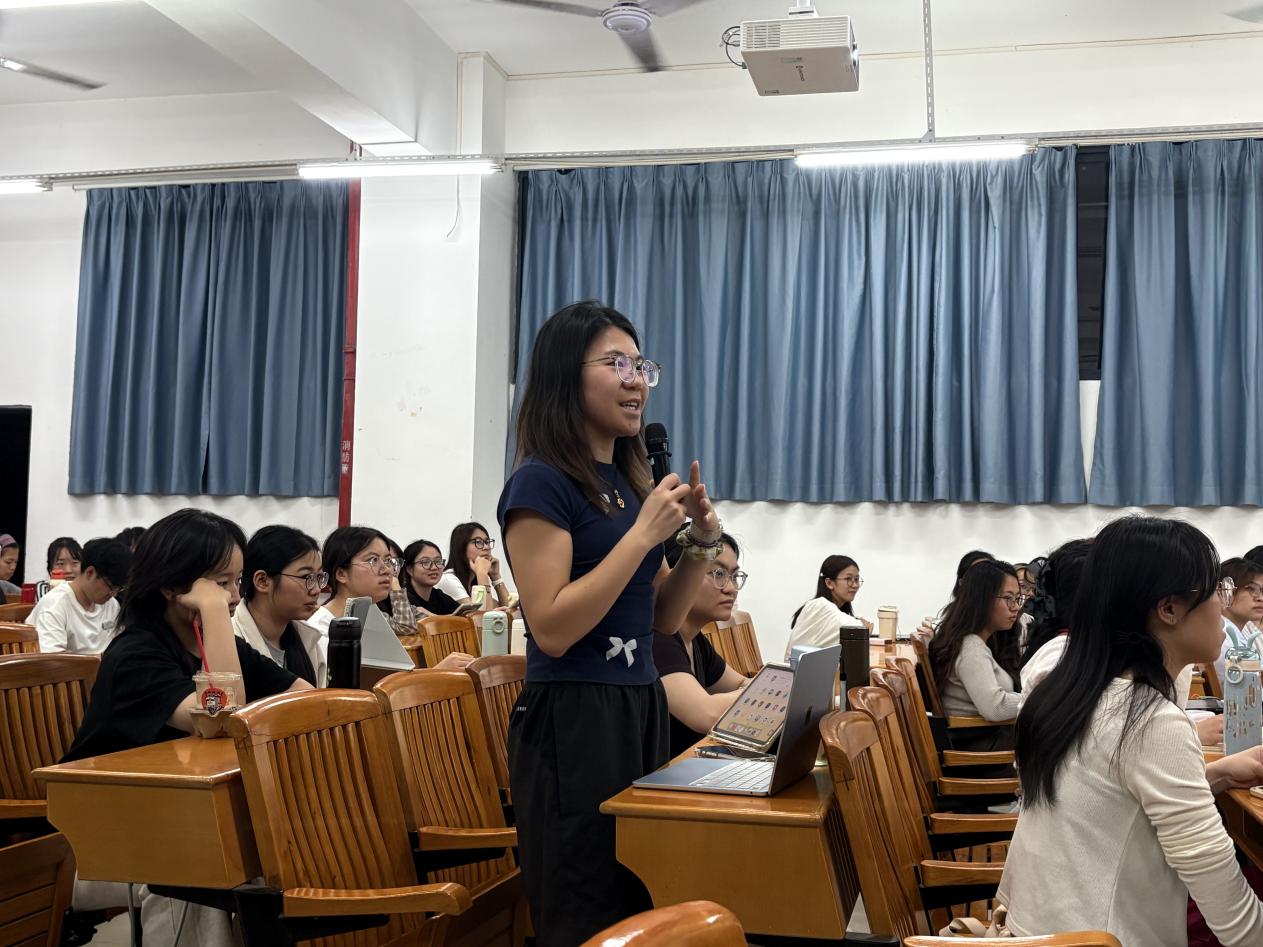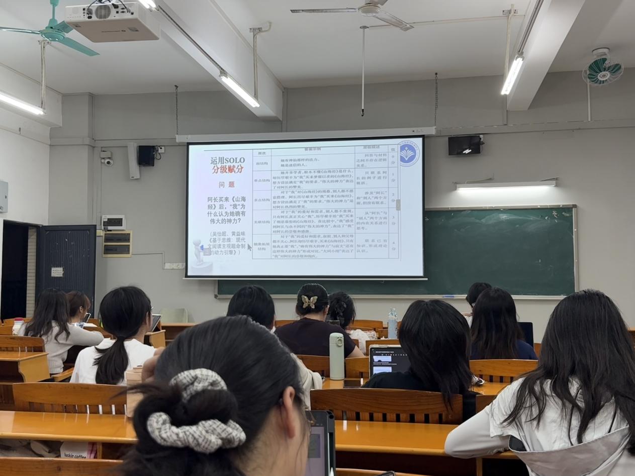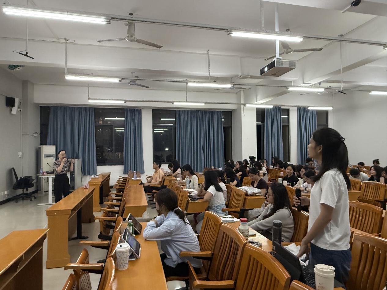 在互动环节,同学们围绕文本解读、论文写作、教读与自读课区分、深度学习评价及教师成长等实践困惑积极提问。夏老师结合一线经验,逐一给予细致回应:文本解读应依托专业书籍与文献验证;教学研究可聚焦实用文本、古诗文深度教学等;教读课重在“授法”,自读课重在“迁移”;课堂评价须呼应中高考素养化、情境化命题趋势;青年教师成长则应坚持“经验+反思”,通过录课复盘、常态授课、积累课例实现专业发展。此外,她推荐了《语文教学通讯》等学习资源,鼓励同学们持续深耕语文教育。