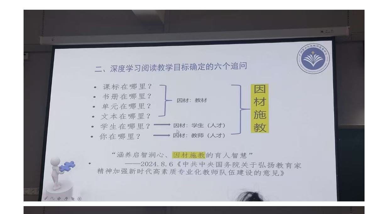 讲座的核心,在于夏老师提出的语文深度学习阅读教学目标确定的“六大追问”,它们构成了层层深入的实践逻辑:一问课标在哪里——锚定语文核心素养,以语言运用带动思维、审美、文化协同发展,并贴合学段要求;二问书册在哪里——把握教材“人文主题+语文要素”的双线逻辑,理清能力进阶脉络,明确单篇在全书中的教学价值;三追问单元在哪里——立足单元整体,区分教读课“教方法”与自读课“用方法”的功能,避免教学碎片化;四问文本在哪里——通过“找重复、矛盾、关联”深度解读,紧扣文本特质;五问学生在哪里——坚持以学定教,以任务驱动实现从“知识获取”到“能力形成”的转变;六问教师,发挥引领作用,通过符合教学规律又有个性化的精准设计与反思,使学习可见,落实因材施教。