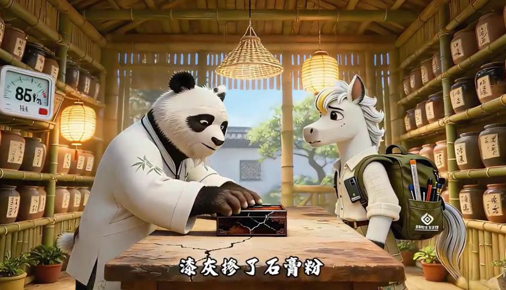本次获奖作品《漆艺守望》源于我院网络与新媒体专业必修课程《传播学与新媒体概论》的教学实践探索。课程以“以创促学、以赛促教”为导向,引导学生将课堂所学转化为实践创作能力,有效提升了学生在AIGC领域的综合实践水平,也为影视艺术智能创作提供了有益探索。在温凤鸣老师的指导下,学生围绕AIGC影视创作流程展开学习与实践,从前期创意构思到剧本生成,到中期画面生成,再到后期剪辑包装,逐步建立起完整的AI协同创作方法。作品以中国传统漆器非遗艺术修复技艺为切入点,通过墨守师傅与马小白两代手艺人的传承故事,探讨传统工艺坚守与当下速成修复之间的矛盾,传递“匠心守艺”的价值内核。短片以师徒学艺经历为线索,展现对漆器技艺的敬畏与坚守,也回应了当下传统手工艺在传承与发展中面临的现实问题,作品以富有新意的表达方式引发人们对漆器技艺本质与创作初心的思考。