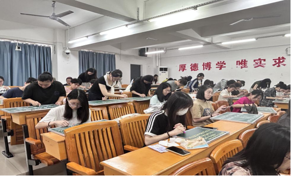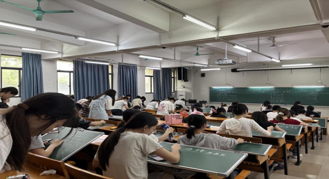 本次测试沿用往年的考核形式,考核流程规范有序。考场招募其他专业学生协助参与监考与秩序维护,23级学生通过线上方式提交马贺诗作《马诗》粉笔字书写作品,24级学生现场独立完成毛泽东词《念奴娇•昆仑》硬笔字书写。全程实行无教师监考模式,依托学生自律与协同监督,既检验了书写专业素养,也展现了良好的考风学风与诚信意识。