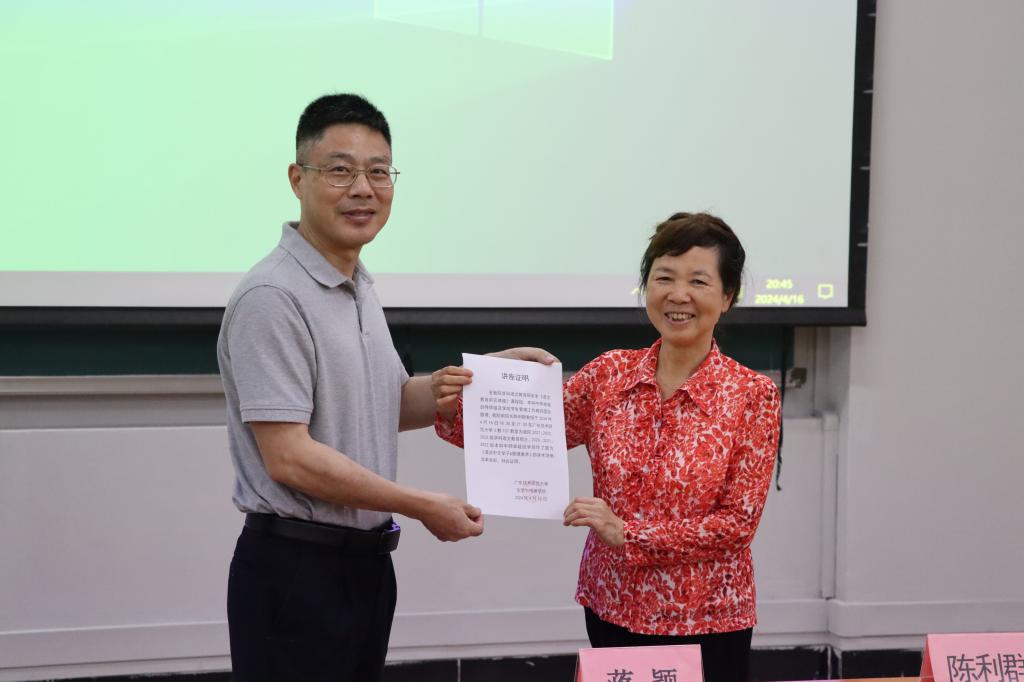 在活动尾声,蒋颖老师对本次讲座作了感悟式的总结,他谈到听了陈教授的讲座,脑海里浮现出“金针度人”四个字,并感叹管理素养太有用了。没有管理素养,人的上限就会受限,有了管理素养,人的潜能才可能正常发挥,甚至超常发挥。讲座在蒋颖老师向陈利群教授敬颁讲座证明后顺利结束。