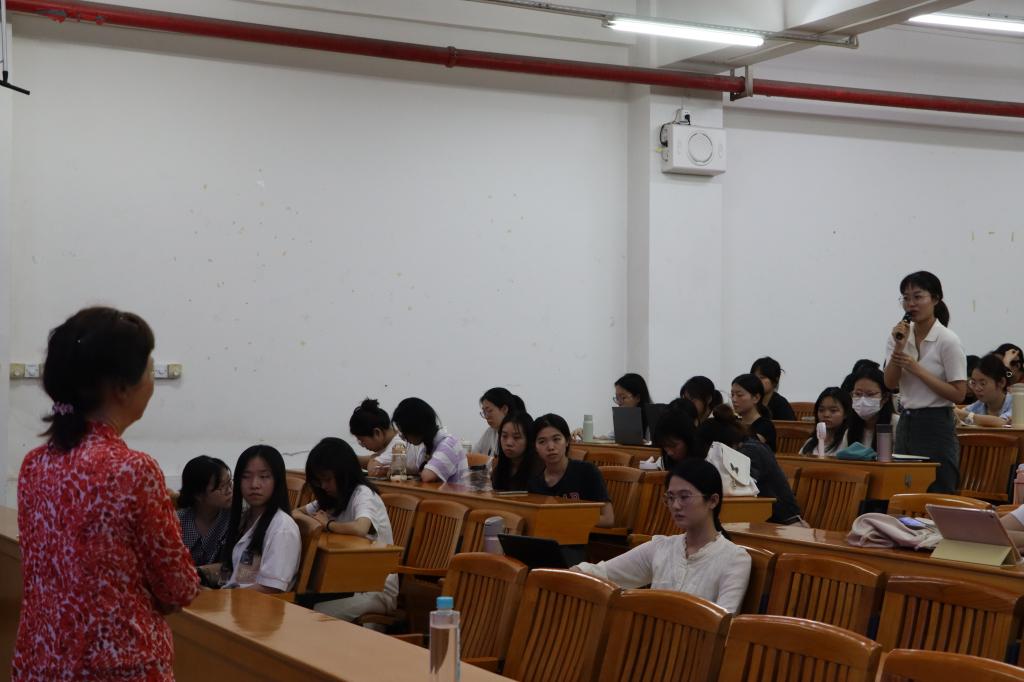 在讲座的交流互动环节,同学们踊跃发言,提出了“性格内向的班主任怎样才能做好管理工作”“怎么兼顾作为管理者的班主任和普通教师的工作”“中文学生怎样在体制内生存”等问题,陈教授一一解答了所有问题。